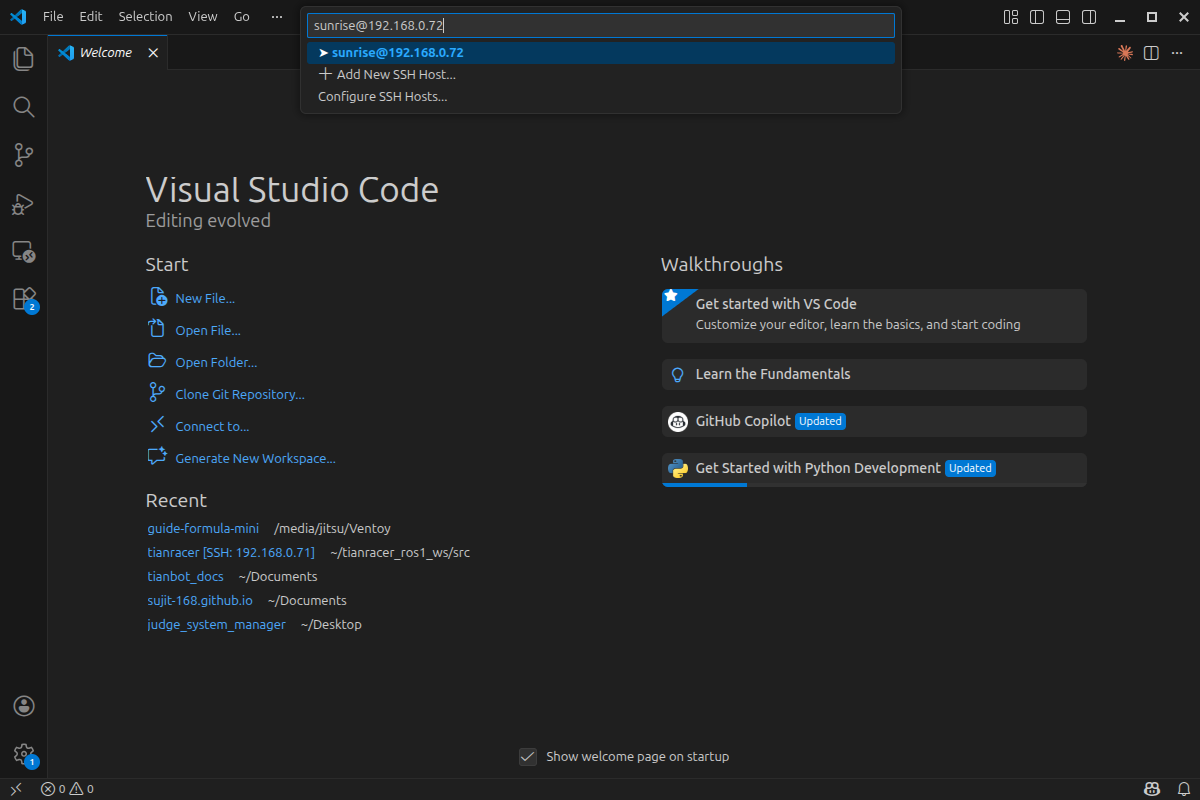 想一想:如果在机器人上改代码,非要插显示器吗? 目标:用你自己的电脑,像改本地文件一样改机器人的代码。